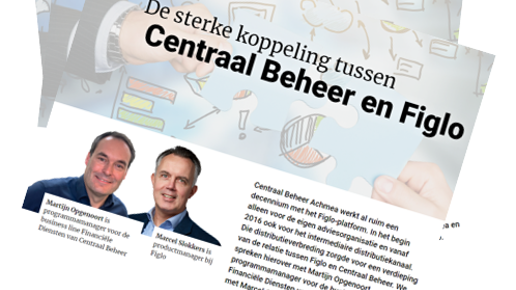 Centraal Beheer Achmea werkt al ruim een decennium met het Figlo-platform. In het begin alleen voor de eigen adviesorganisatie en vanaf 2016 ook voor het intermediaire distributiekanaal. Die distributieverbreding zorgde voor een verdieping van de relatie tussen Figlo en Centraal Beheer. We spreken hierover met Martijn Opgenoort, programmamanager voor de business line Financiƫle Diensten van Centraal Beheer Achmea en met Marcel Slokkers, productmanager bij Figlo.